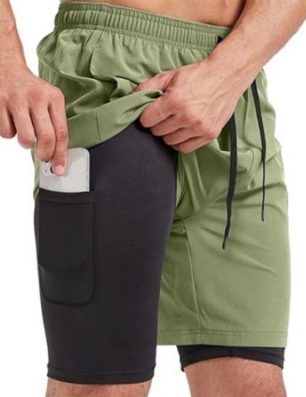 Men’s 2-in-1 Athletic Running Shorts 7″ Dry Fit Workout Gym Outdoor Sports Wear with Multiple Pockets Training Short
