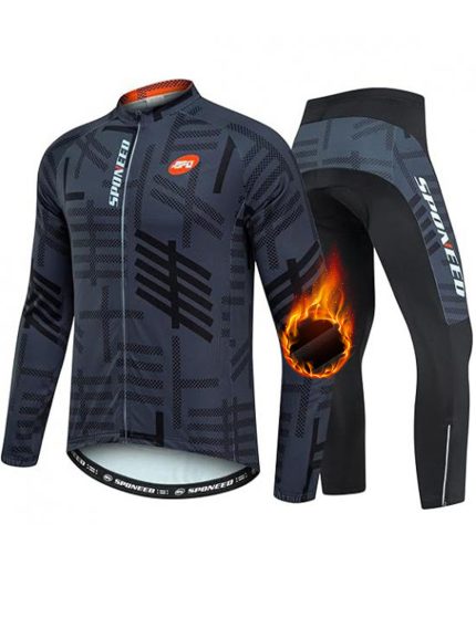 Fleece Men’s Cycling Jersey Suits Windproof Bike Shirt Trousers