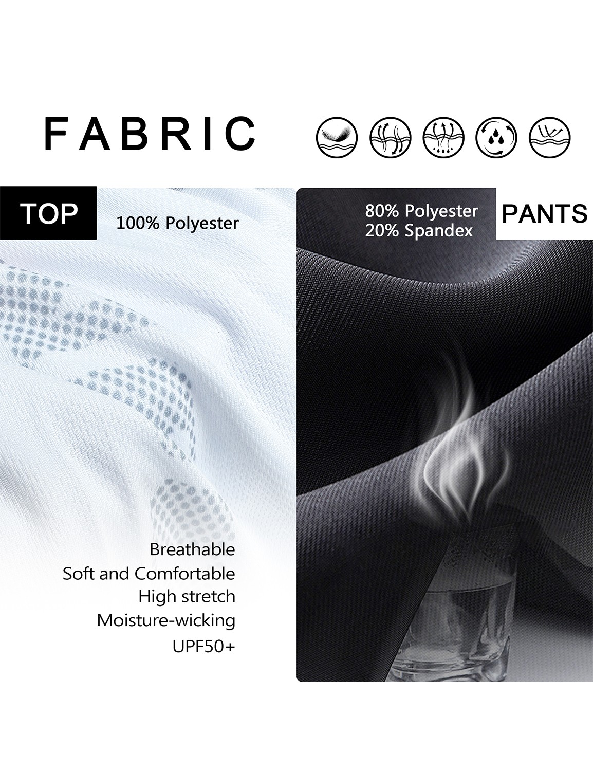 This set looks more expensive than it is. The black and white design is sleek. The material has good stretch without feeling flimsy.