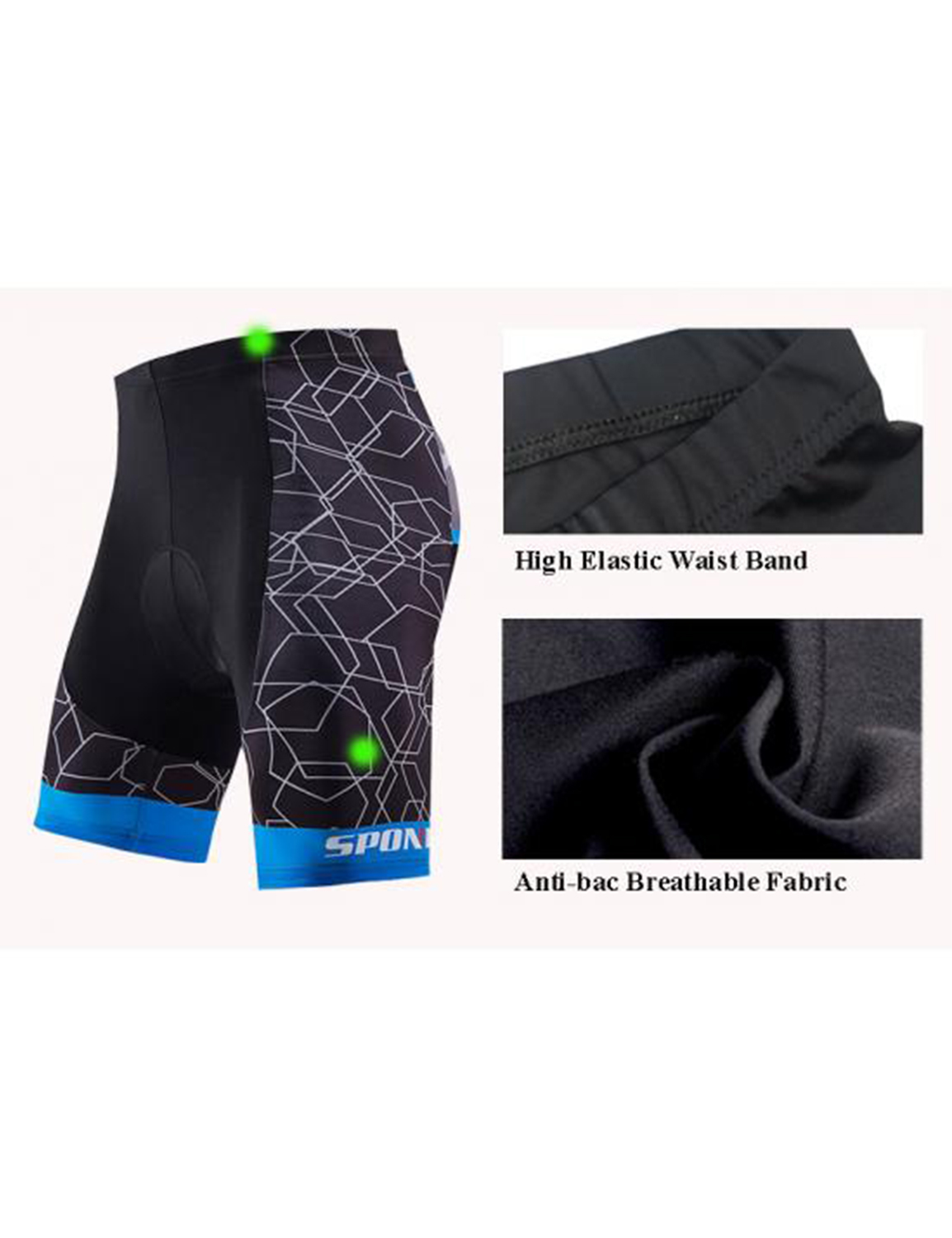 The pad in the shorts with high density sponge and gel silicone absorbs the shock during riding and protects your hip and reproductive system. The uneven surface is breathable and improve the effect of wicking.