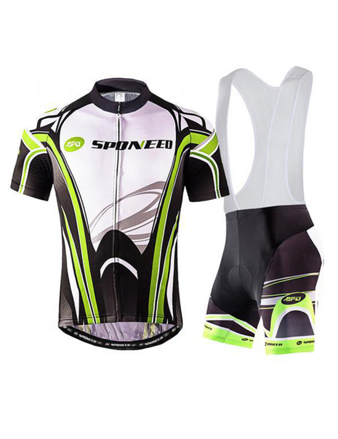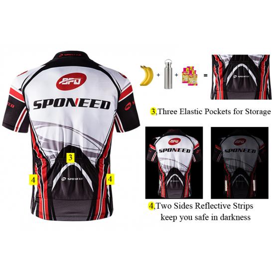Sponeed cycling jersey and bib shorts is an ideal cycling clothing for riders, it is lightweight and breathable keep you feeling comfortable and dry. The sponeed printed elastic grippers hold the jersey and short edges in place and from riding up. The longer shaped back is well suited for cycling riding position. The Jersey is a full length zipper with 3 rear pockets plus an extra zipped pocket for your valuables. Reflectors on both the jersey back were added for dusk and night riding.