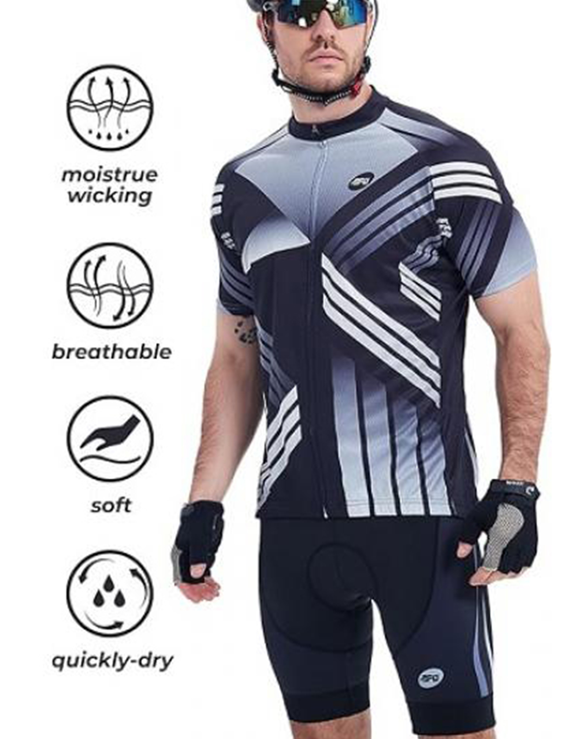 This cycling jersey and shorts set comprises a bike short sleeve shirt and bicycle half pants. The materials are lightweight, breathable and quick-drying, ensuring you stay comfortable and cool. This makes the cycling uniform essential for cyclists and guarantees a wonderful riding experience.