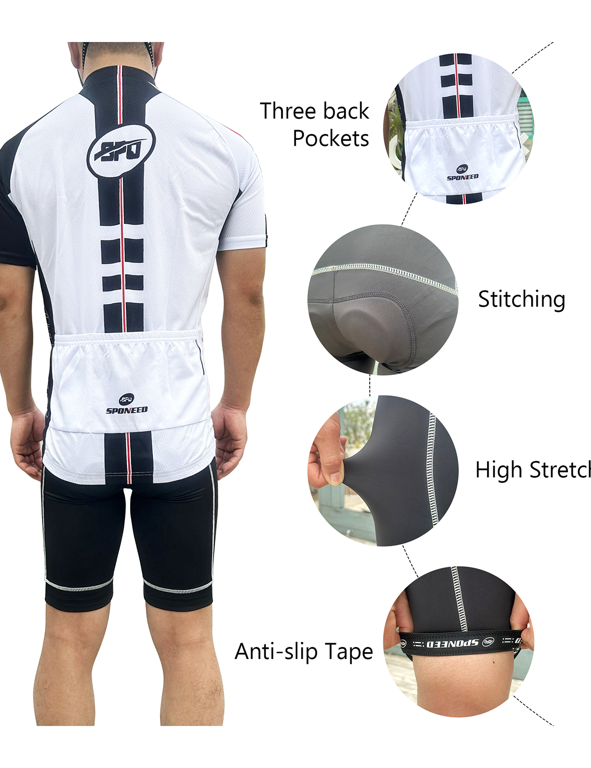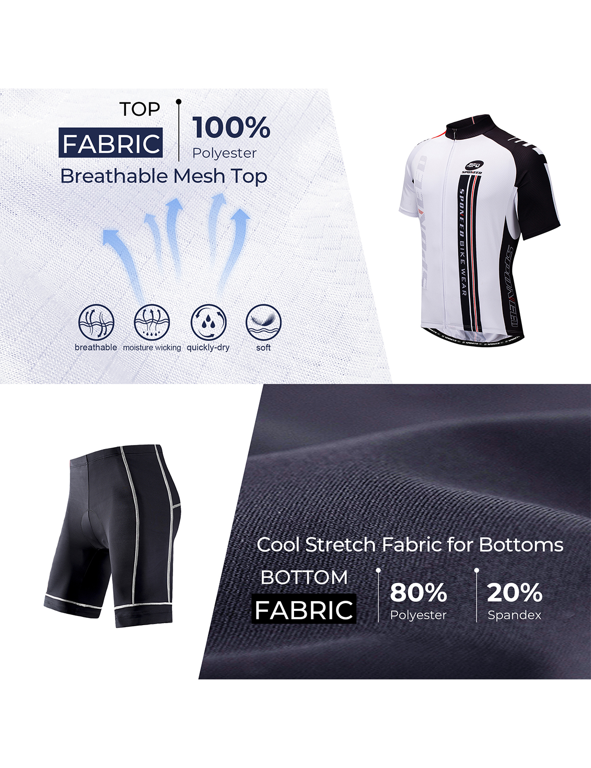 The SPONEED short sleeve cycling jersey & shorts sets is very suitable for summer riding, for the clothing is breathable and make you cooler. The bike suits can keep you dry in the warm condition. They can be used at different occasions: Gym spinning , outdoor road riding , road racing, MTB cycling.