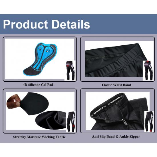 SPONEED Cycling Pants is made of high quality fabric, CoolMax Spandex Lycra Polyester material has great stretch factor, which adds extra comfort and ease during cycling, with good air permeability and wicking capability transports moisture away from the body to keep you cool and comfortable, polyester and spandex Lycra with sublimation print that never fades out.