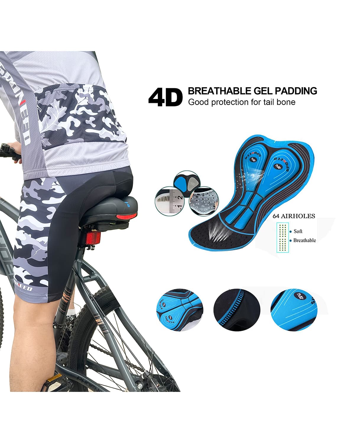 GEL PADDED DESIGN:Â Featuring a gel padded design, which helps absorb shocks during bike riding. This makes sure that our mens cycling shorts are comfortable to wear during even the most strenuous of cycling sessions.