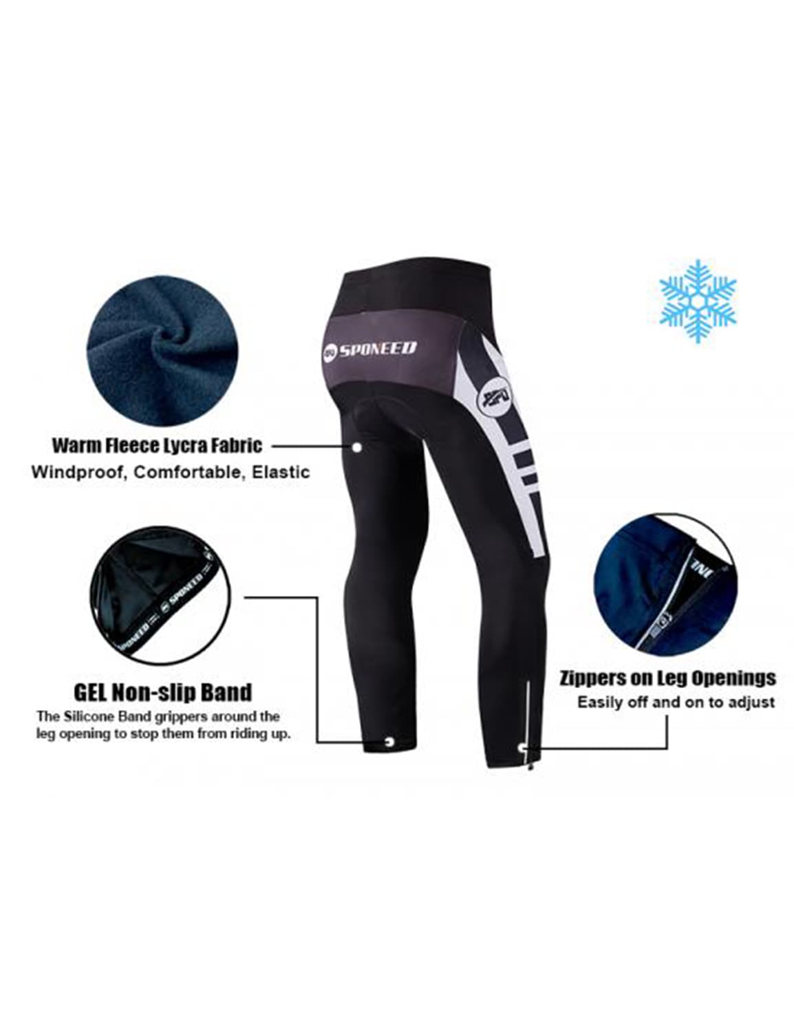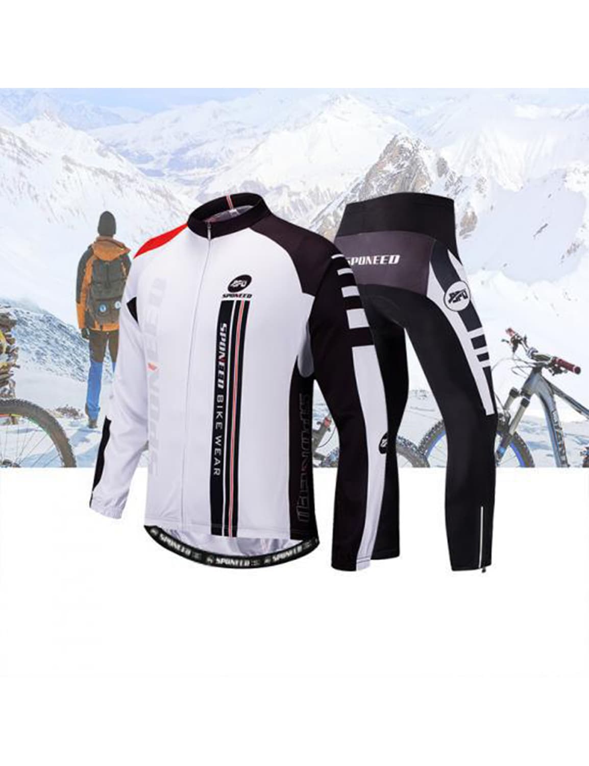 Our Sponeed Cycling Team thermal jersey and tights were designed to meet the demands of cold weather cycling. The high quality, super thermal fleece fabric offers a unique warm fleece interior which provides incredible heat retention and keeps your body warm in the coldest conditions.