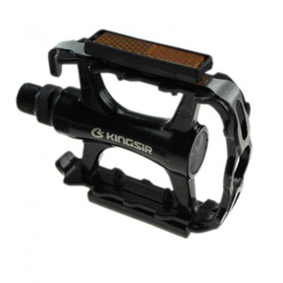 Reflective strips on sides of pedal help you stay visible while you ride