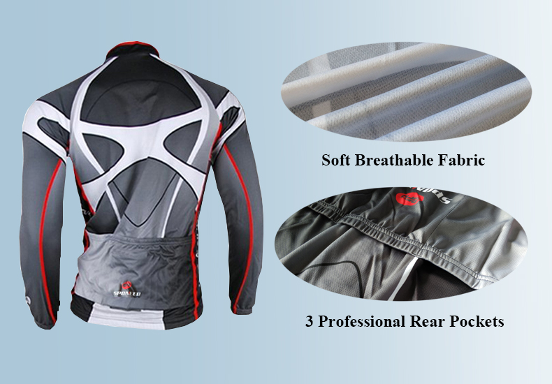 3. Long sleeve bike jersey has three convenient rear pockets for storing important gears.