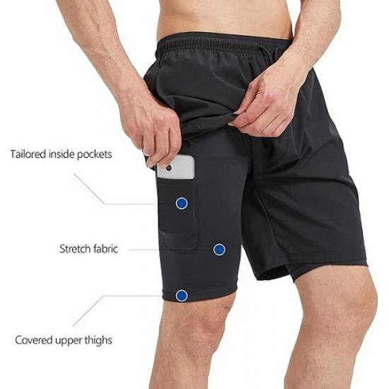 Men’s 2-in-1 Athletic Running Shorts 7″ Dry Fit Workout Gym Outdoor Sports Wear with Multiple Pockets Training Short