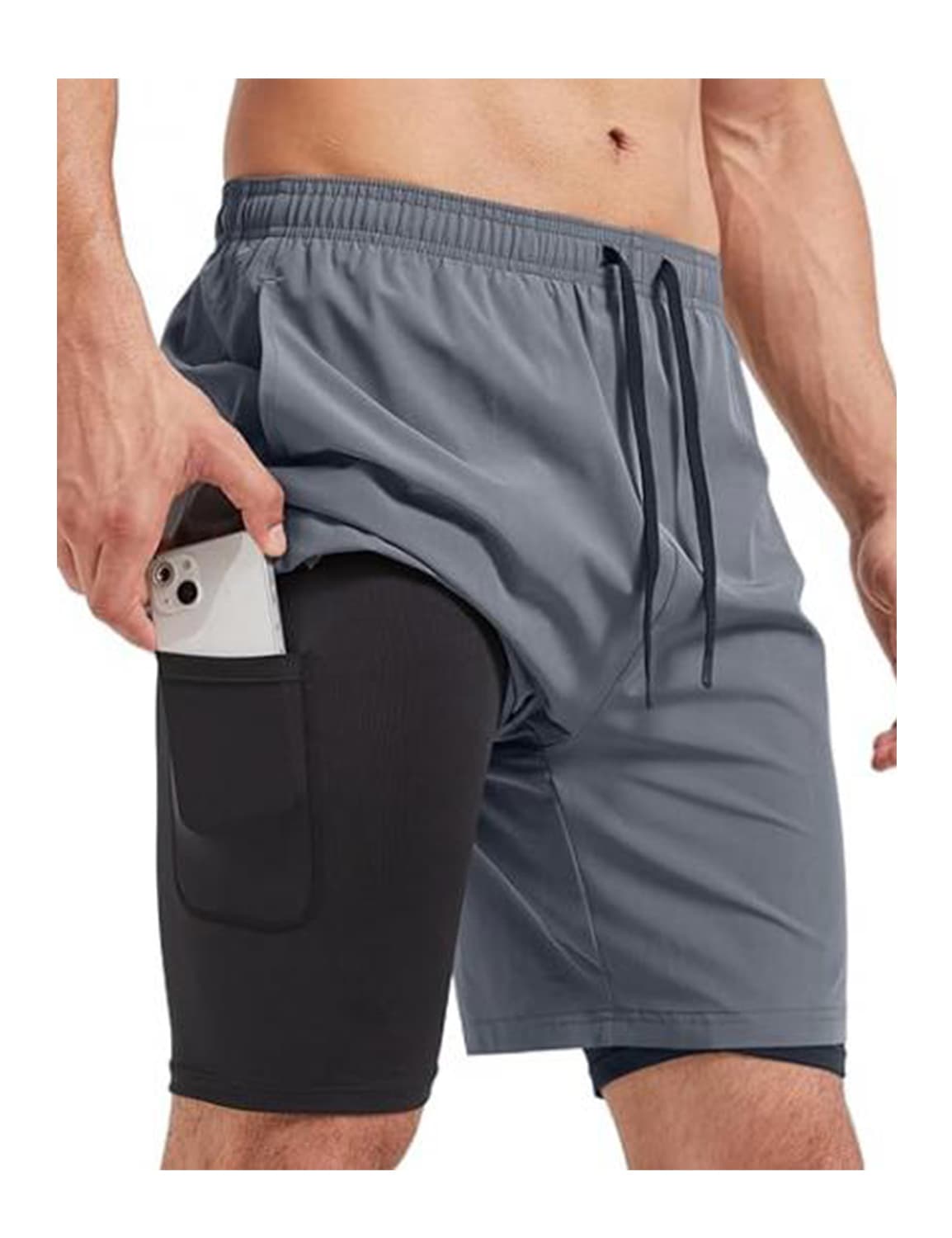 Running shorts for men feature a thoughtful design with hidden, fitted pockets for cell phones and other essentials, all while maintaining a stylish appearance.