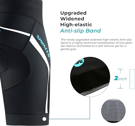 - Professional design,Road bike shorts with elastic wide waist provides the flexibility for a better fit. Large areas of high-tech non-slip materialsat the bottom of bicycling shorts will prevent your pants from moving up and down while cycling, and also reduces irritability caused by friction during exercise.