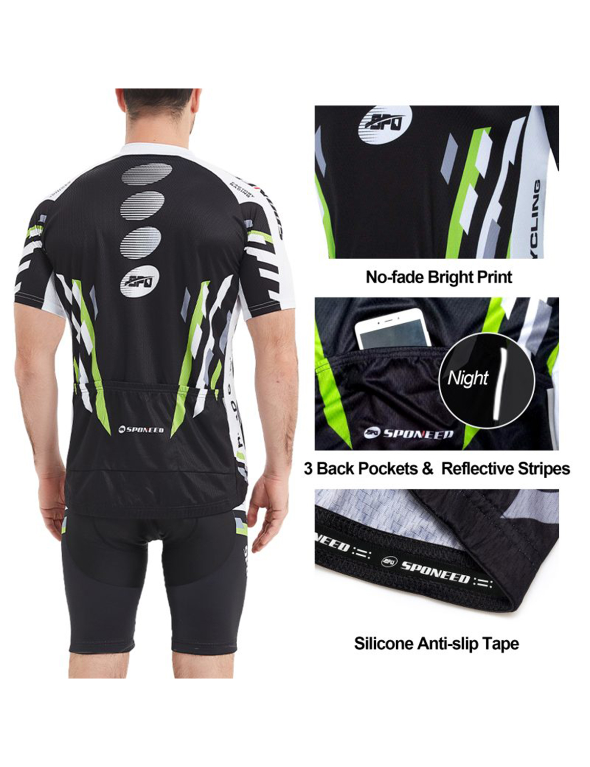 Sponeed Mens Bike Shirt and Shorts Set