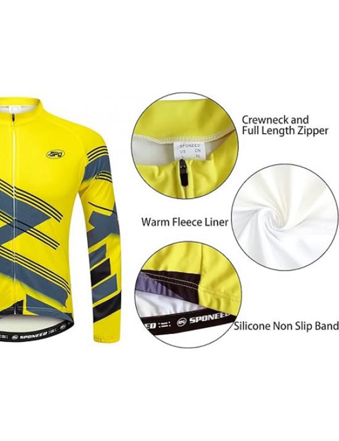Our Sponeed Cycling Team thermal jersey and tights were designed to meet the demands of cold weather cycling. The high quality, super thermal fleece fabric offers a unique warm fleece interior which provides incredible heat retention and keeps your body warm in the coldest conditions.