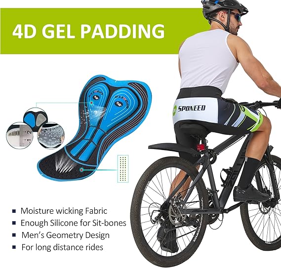 -GEL PADDED DESIGN:Â Featuring a gel padded design, which helps absorb shocks during bike riding. This makes sure that our mens cycling shorts are comfortable to wear during even the most strenuous of cycling sessions.