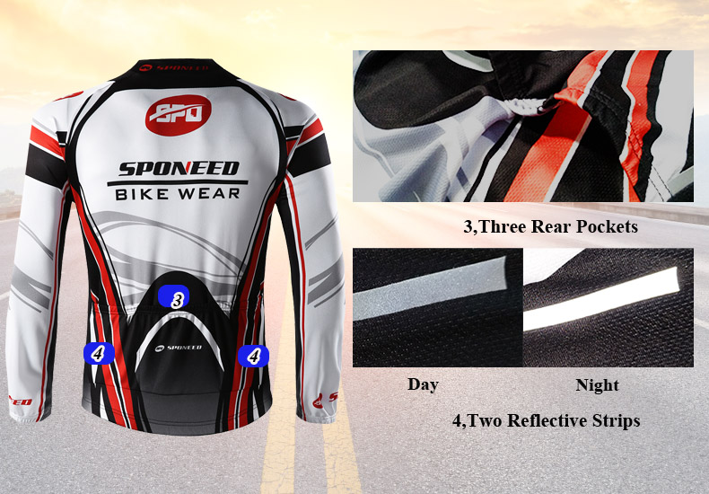 The long sleeve bike shirt is made of high quality 100% polyester, lightweight, breathable and stretch. Breathable mesh fabric with good air permeability and wicking capability transports moisture away from the body to keep you cooler and comfortable. Even you are sweaty, the jersey never adhere to your skin. It can keep dry in the hot and cool condition.