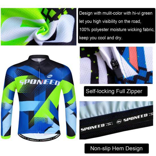The long sleeve bike shirt is made of high quality 100% polyester, lightweight, breathable and stretch. Breathable mesh fabric with good air permeability and wicking capability transports moisture away from the body to keep you cooler and comfortable. Even you are sweaty, the jersey never adhere to your skin. It can keep dry in the hot and cool condition.