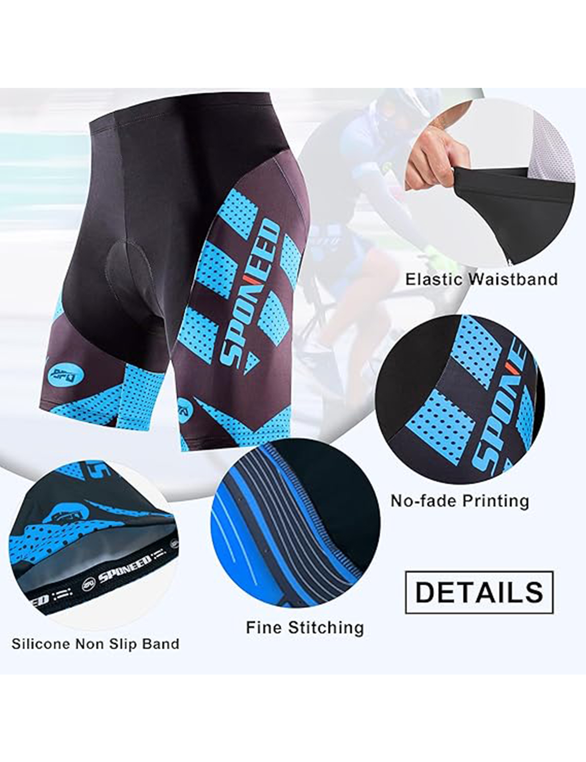 Sponeed Mens Cycling Shorts Padded Road Bike Spin Tights
