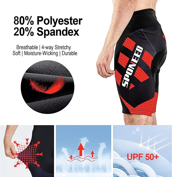 Sponeed Mens Cycling Shorts Padded Road Bike Spin Tights