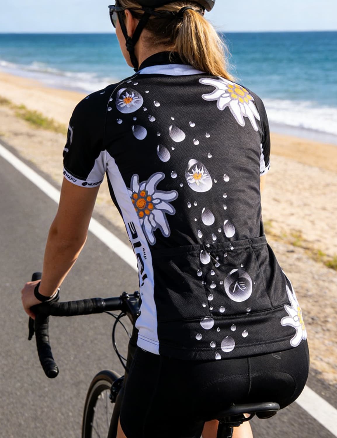 Sponeed women’s cycling jersey is made of 100% polyester which has strong moisture wicking ability. 3D structure and innovative design increase the evaporation of sweat and cooling area which can create a ideal air layer. In the hot environment, the jersey will stay dry and cool. With streamlined design, it will fit your body perfectly. Moreover, it can effectively lower the wind resistance with a elegant appearance.