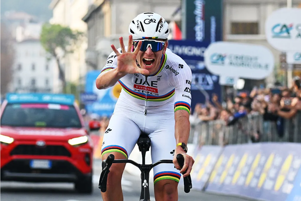 Tadej Pogačar’s relentless rewriting of cycling history continued when he claimed his fifth consecutive victory in Il Lombardia, equalling the record number of wins for the event held by the legendary Fausto Coppi, while also becoming the first rider to win five editions in a row of any Monument. The Slovenian finished 1-48 clear of Remco Evenepoel (Soudal Quick-Step) in Bergamo, with Australia’s Michael Storer (Tudor Pro Cycling) more than three minutes back in third place and Quinn Simmons (Lidl-Trek) fourth. After yet another show of force by his UAE Team Emirates-XRG team, recently crowned world and European champion Pogačar attacked on the climb of the Passo di Ganda, with a little less than 37km remaining. He quickly opened up a gap on his main rivals as he bridged up to and then breezed past Simmons, the sole survivor from the 14-rider break that had formed soon after the start. Cresting the Ganda, Pogačar was 1-15 clear of Evenepoel, Simmons and Storer. As ever, the UAE team leader didn’t falter on the run-in. As he crossed the line in Bergamo holding up five fingers to celebrate his success, he also became the first rider in history to finish on the podium of the five Monuments in the same season, the success taking his total wins in these great races to 10. This puts him equal third in the all-time list with Costante Girardengo, behind Eddy Merckx (19 wins) and Roger De Vlaeminck (11) .